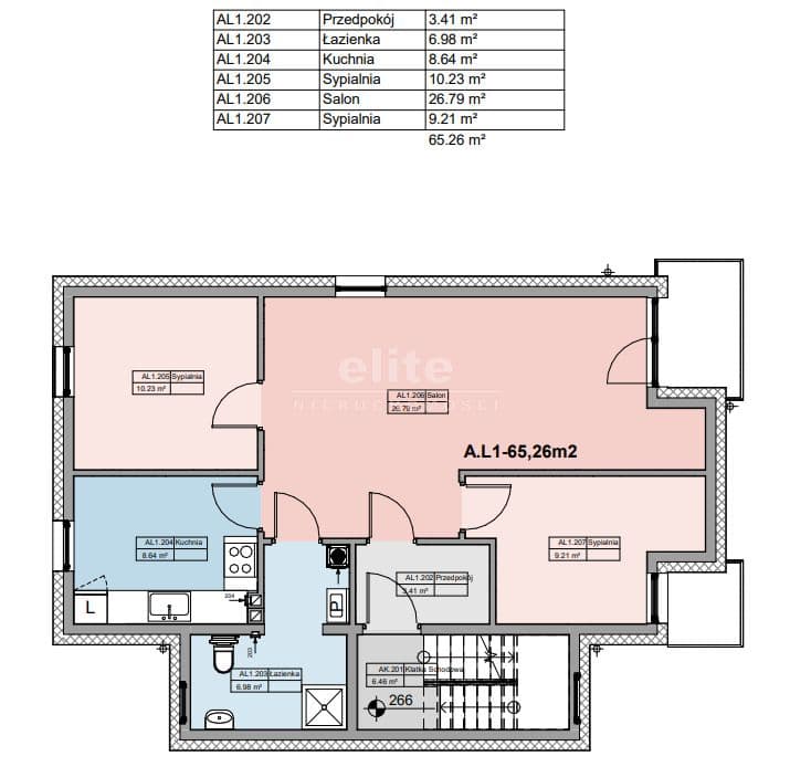 Mieszkanie składa się z przestronnego salonu z balkonem, dwóch sypialni (jedna z prywatnym balkonem), osobnej kuchni, łazienki oraz przedpokoju. Mieszkanie posiada własny, prywatny piec gazowy dwufunkcyjny.