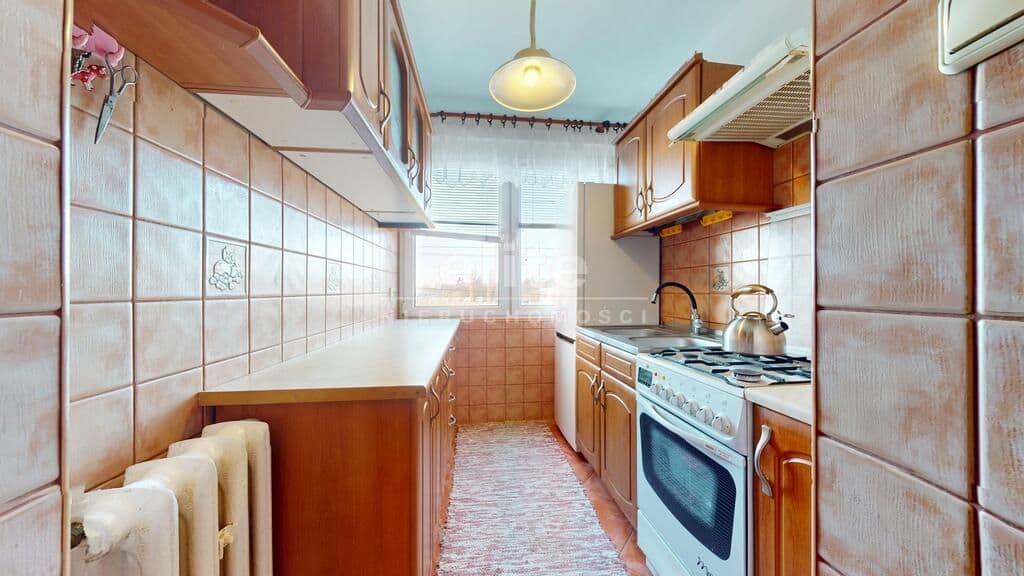 Pokoje rozkładowe, na podłogach panele, na ścianach tapety. Kuchnia widna, z meblami pozostającymi w cenie mieszkania.