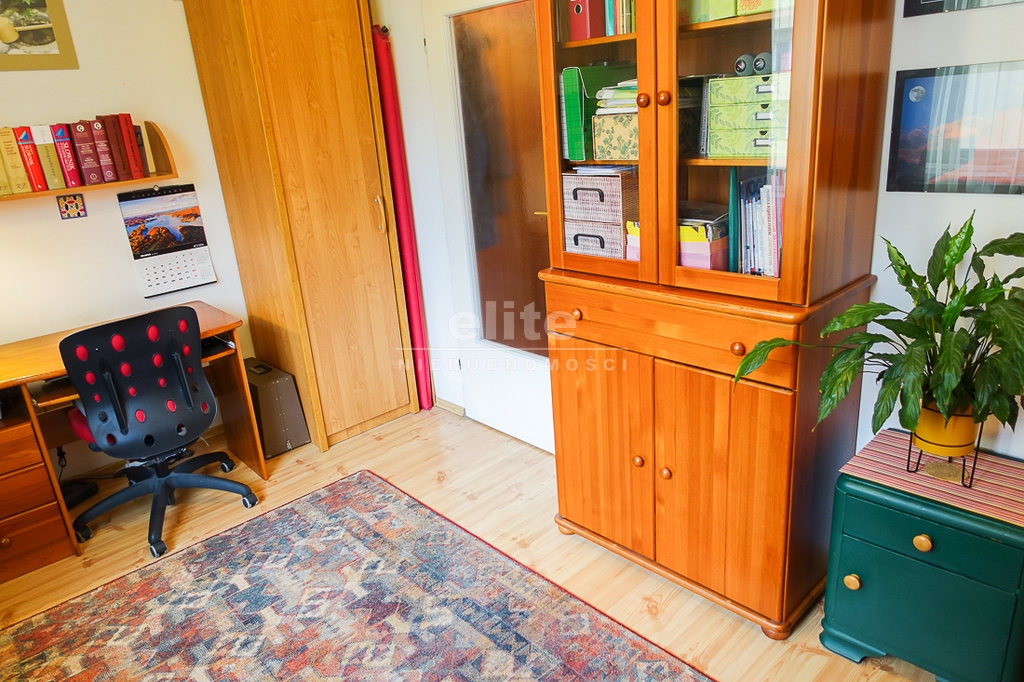 pokój drugi o powierzchni 11,7 m2 z oknami od strony zachodniej, w pokojach na podłodze panele.