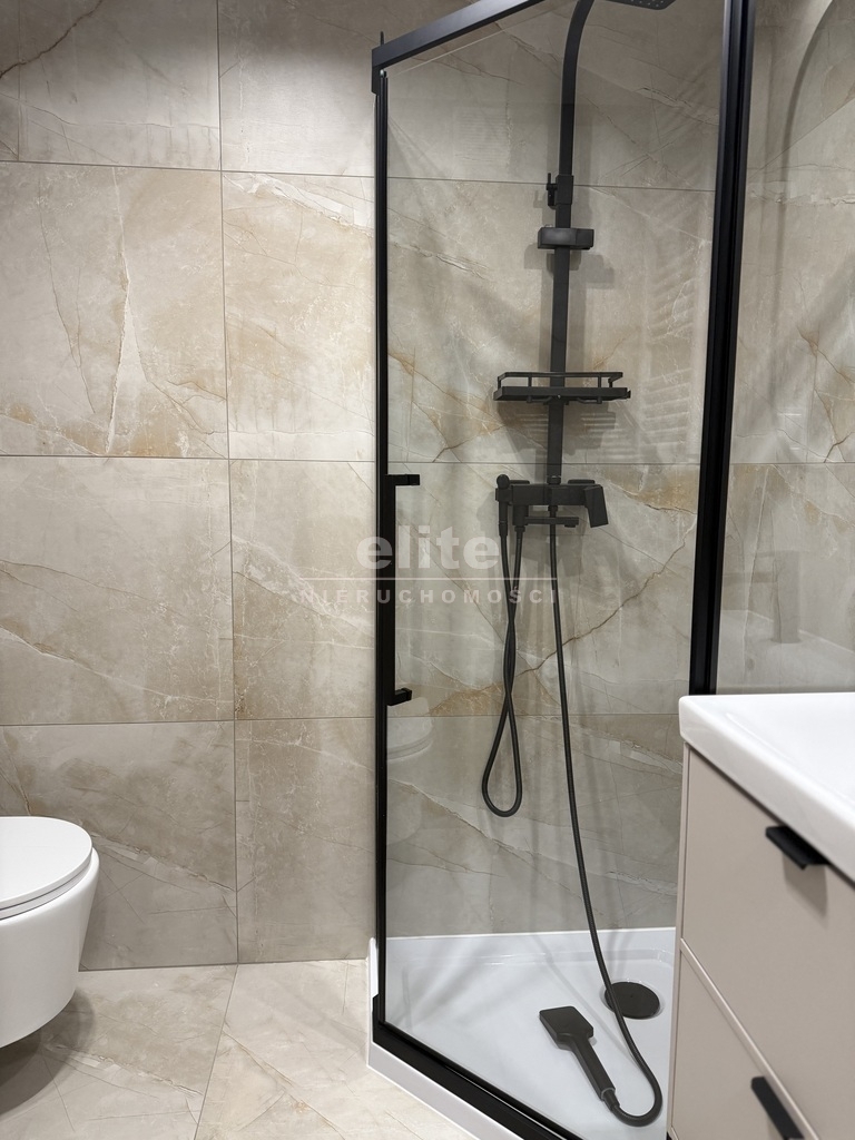 - łazienka z kabiną prysznicową oraz wc w glazurze i terakocie