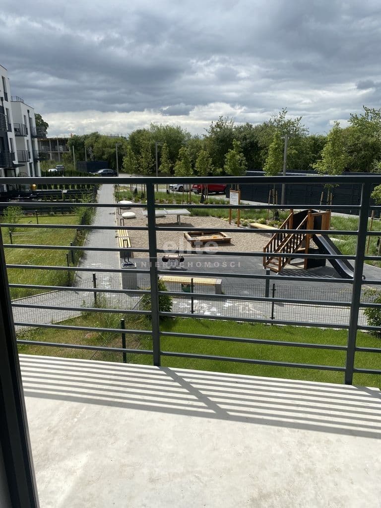 - widok na tereny zielone oraz plac zabaw