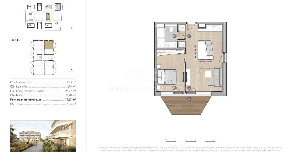 Prezentowana oferta dotyczy apartamentu, o powierzchni 43,27 m2, który składa się z: