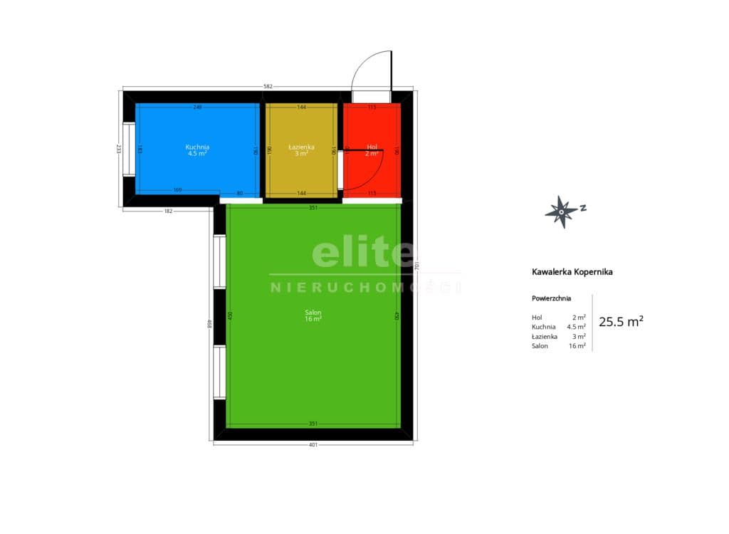 ● powierzchnia: 25,5 m²