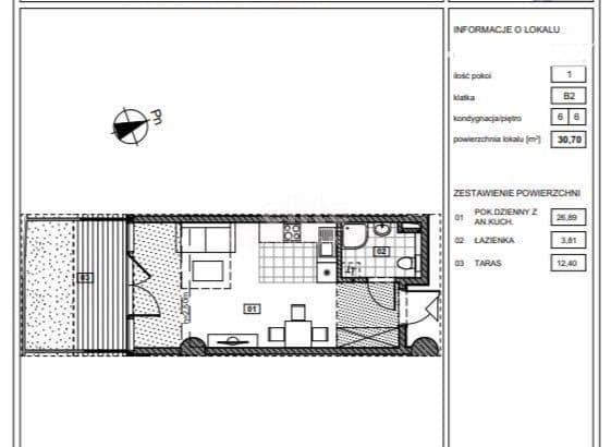 Zapraszam na prezentację wyjątkowej oferty apartamentu w nowym obiekcie, obecnie najwyższym budynku w Szczecinie liczącym 122 m z wyjątkowymi 30 kondygnacjami z czego 3 to kondygnacje podziemne. Obiekt ten będzie łączył funkcje komercyjne, rekreacyjne oraz mieszkaniowe. W budynku znajdować się będą sklepy, biura, restauracje oraz klimatyczny basen z częścią rekreacyjną. Dodatkowe udogodnienia dla mieszkańców to garaż na rowery oraz taras widokowy na ostatniej kondygnacji. Apartament znajduje się na 6 piętrze, salon z aneksem kuchennym ma powierzchnię 26,89 m2, łazienka o powierzchni 3,81m2 oraz duży taras 12,40 m2, który stanowi naturalne powiększenie przestrzeni a w okresie letnim jest to doskonałe miejsce rekreacyjne. ZAPRASZAM NA PREZENTACJĘ.
