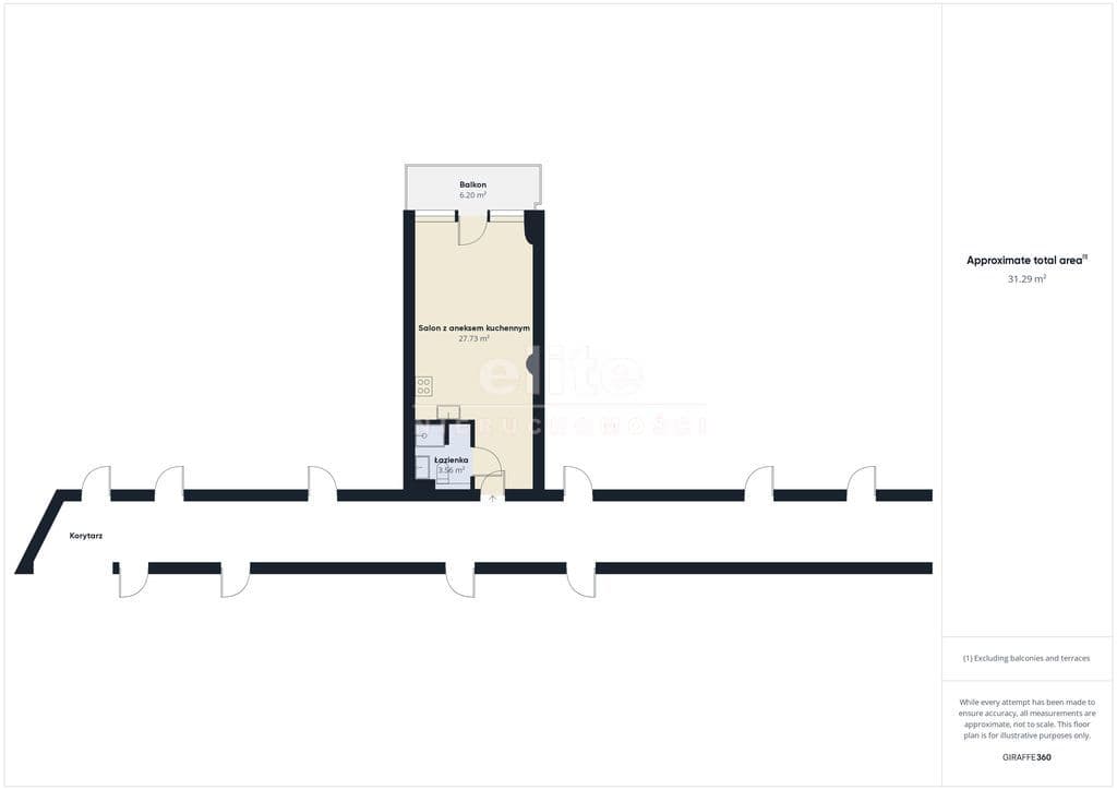 Apartament o powierzchni 30,89 m2 znajduje się na 3 piętrze .