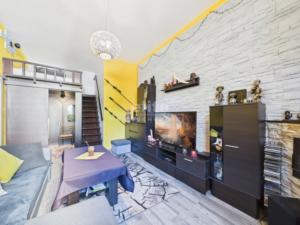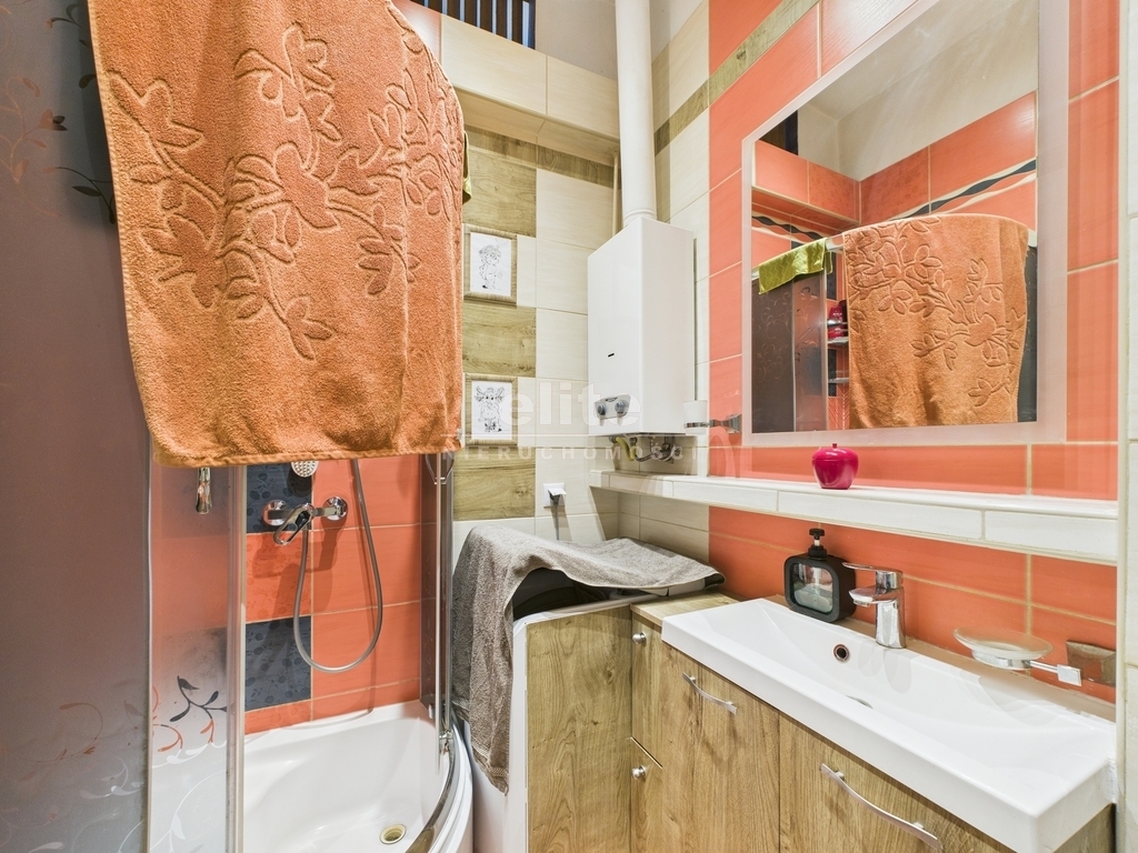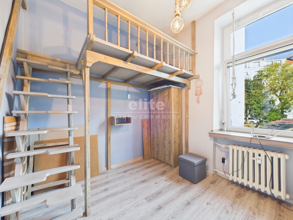 Mieszkanie jest gotowe do zamieszkania. Wyróżnia je ciekawa aranżacja z wykorzystaniem antresoli, dzięki czemu zyskano dodatkową przestrzeń użytkową. Wysokie pomieszczenia i duże okna zapewniają dobre doświetlenie przez cały dzień. Wnętrza utrzymane w zdecydowanych kolorach, co nadaje im indywidualny charakter – przy odświeżeniu z łatwością można nadać im nowy styl.