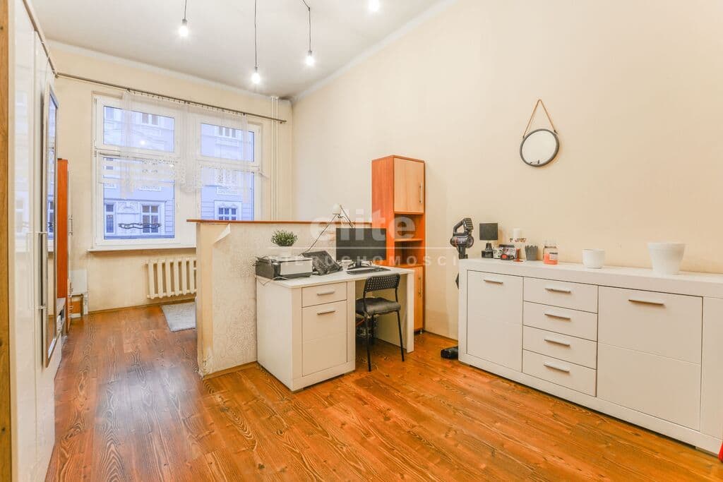 Salon wychodzi na ulicę, natomiast kuchnia i sypialnia na zielone, spokojne podwórze, co zapewnia ciszę i przyjemny widok z okien.