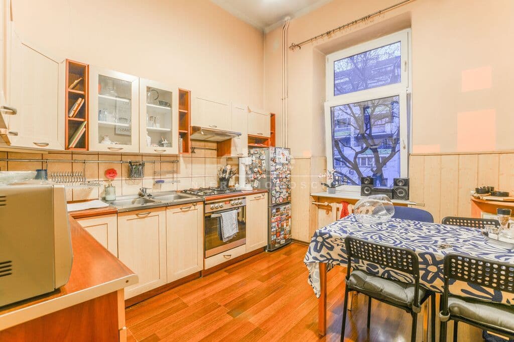 Wysokość pomieszczeń około 3 metrów sprawia, że mieszkanie jest jasne i daje poczucie przestrzeni, charakterystyczne dla przedwojennej zabudowy.