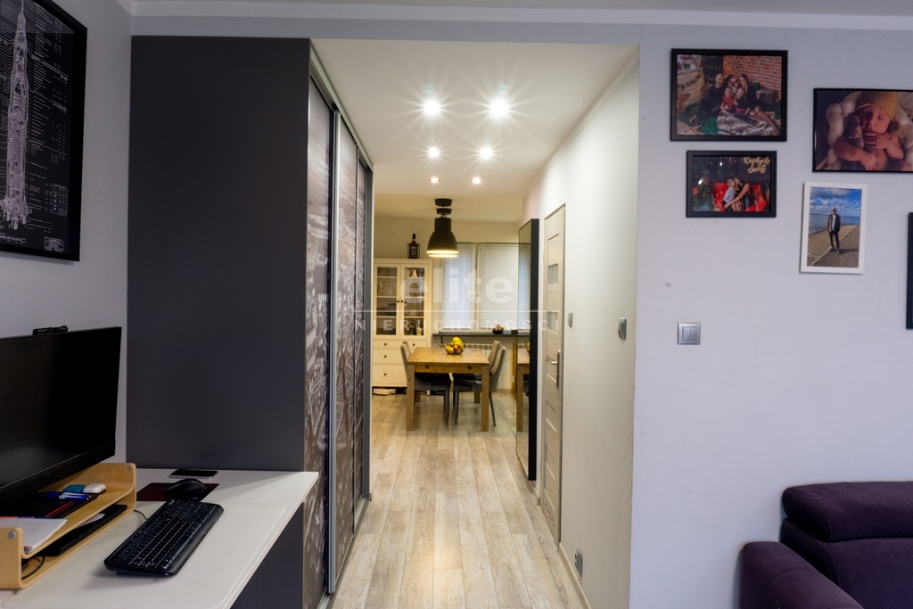 Mieszkanie pierwotnie było 4 pokojowe. Na tą chwilę kuchnia została połączona z jednym pokojem co tworzy wygodną przestrzeń. Można wrócić do pierwotnego stanu.