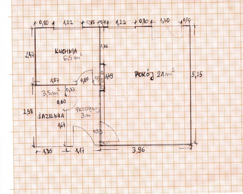 * Pokój o powierzchni 21 m2, oddzielony od kuchni ścianą nośną.