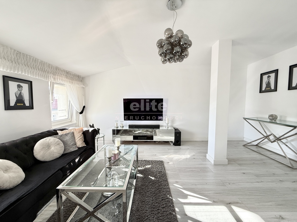 - Przestronny salon z oknami na spokojną część ulicy