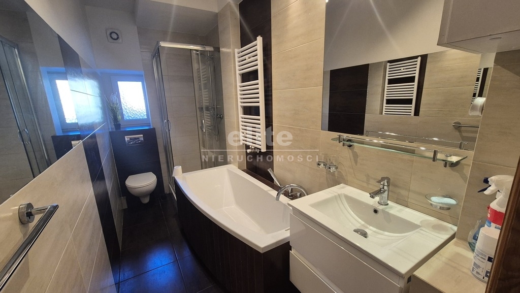 Łazienka z oknem w glazurze i terakocie z kabiną prysznicową, wanną i WC. Kuchnia również z oknem wyposażona i umeblowana jak na zdjęciach, w kuchni miejsce na pralkę. We wszystkich pokojach na podłodze drewniany parkiet w dobrym stanie. Okna wszystkie PCV. Czynsz do wspólnoty ok 341,21zł z funduszem remontowym (bez zaliczek na wodę i śmieci).