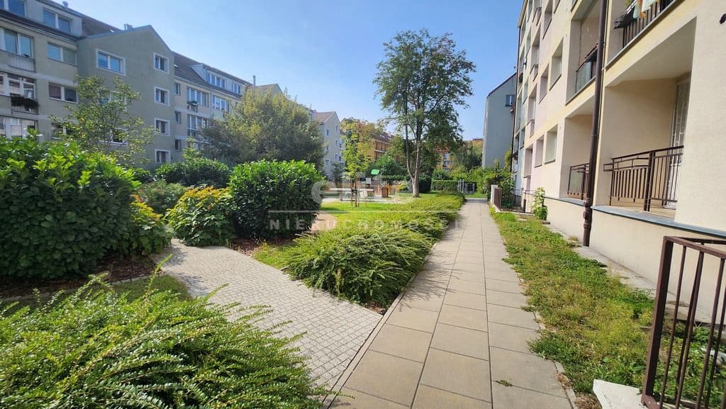 Okna mieszkania wychodzą na dwie strony świata. Salon z balkonem typu logia od południa z widokiem na ładnie zagospodarowane podwórze z licznymi nasadzeniami, alejkami i ławeczkami.