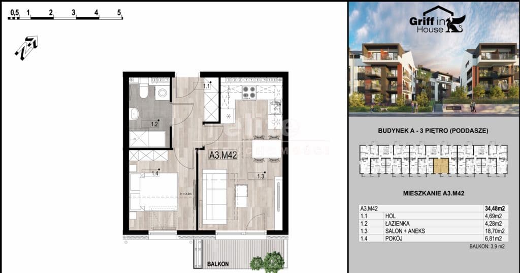 < W pierwszym etapie powstaną dwa kameralne budynki, oferujące łącznie 107 funkcjonalnych mieszkań o powierzchni od 26 do 67 m².