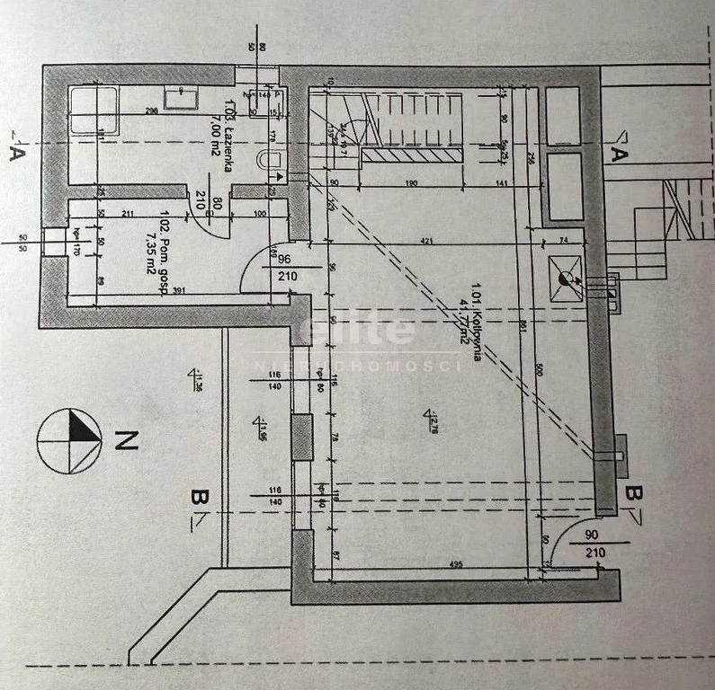 Przyziemie powierzchnia - 57 m2: - pokój 41,7 m2