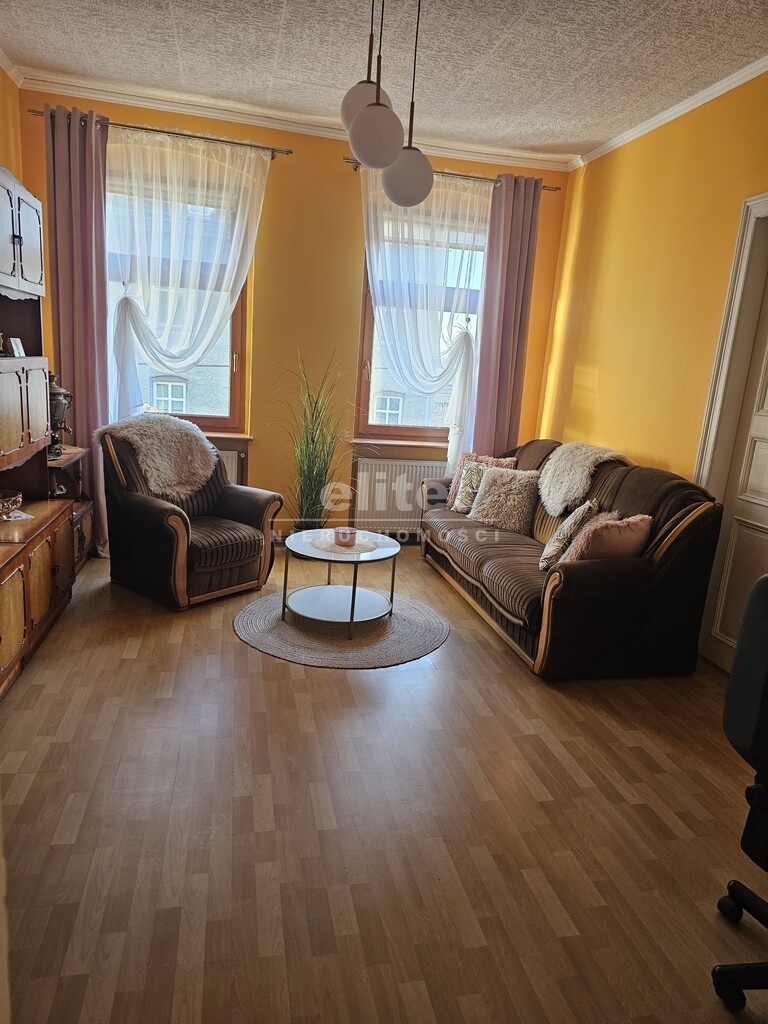 Nieruchomość z zachowaną stolarką drewnianą /drzwi wewnętrzne /,gzymsem w salonie na suficie.