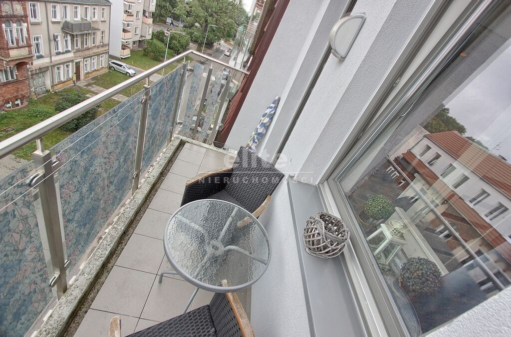 Kwartał Róży Wiatrów w Świnoujściu. Mieszkanie posiada duży balkon, który stanowi dodatkową przestrzeń do odpoczynku i relaksu.