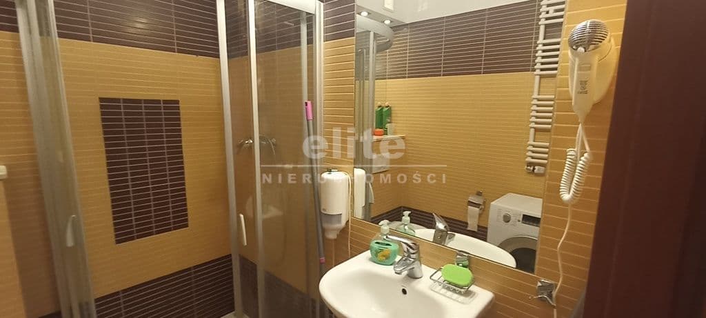 Łazienka razem z wc (kabina prysznicowa, umywalka, szafki; pralka)