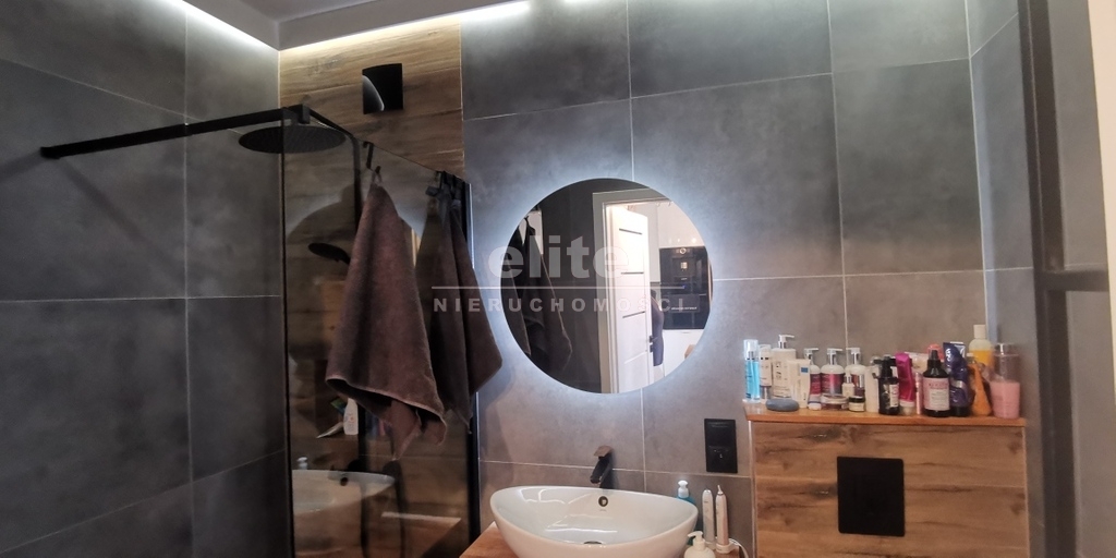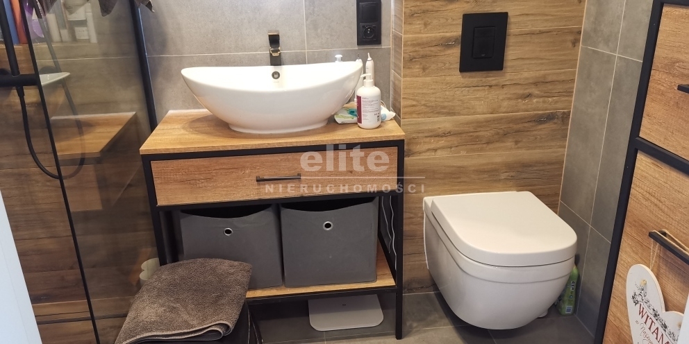- łazienka z kabiną prysznicową, umywalką i wc,