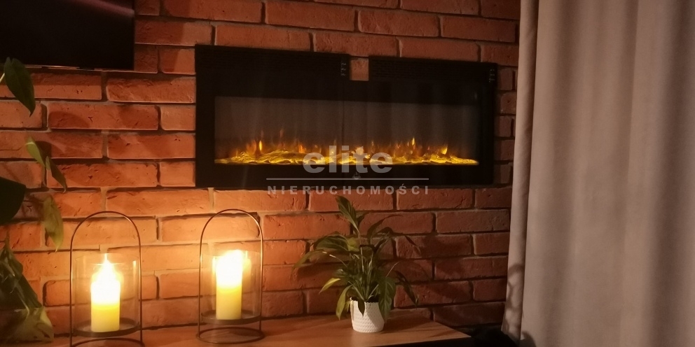 W pokoju dziennym został zamontowany kominek elektryczny z funkcją grzania.