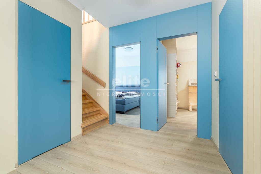 - w korytarzu i na piętrze zabudowane schowki