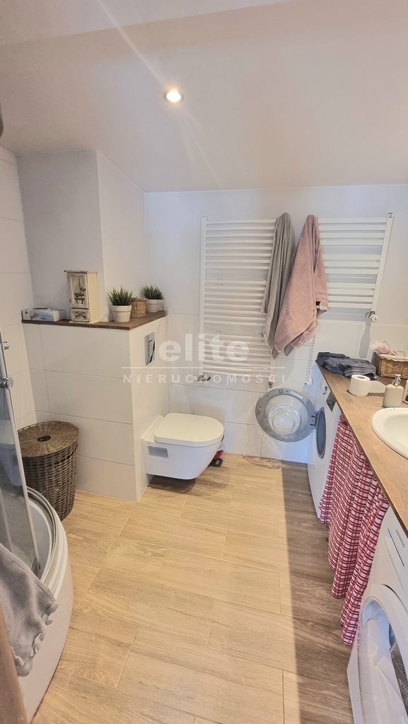 - Łazienka: Nowoczesna, z wygodną kabiną prysznicową, wyposażona w pralkę i suszarkę, co znacząco ułatwia codzienne życie.