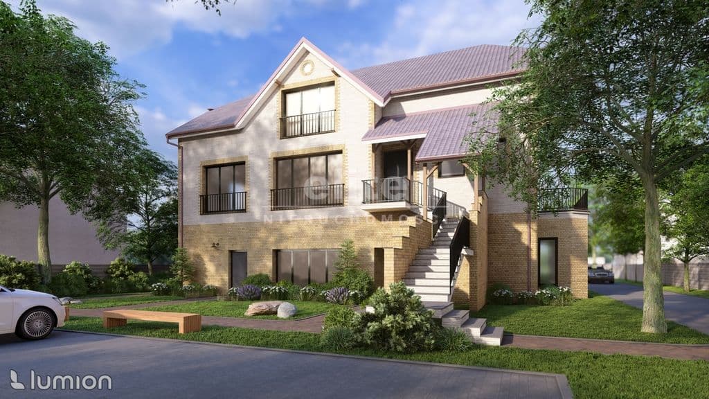 * dwupiętrowy dom otoczony zielenią, posadowiony w głębi działki w otoczeniu innych domów gościnnych, z dala od dużych ośrodków, tylko 14 apartamentów