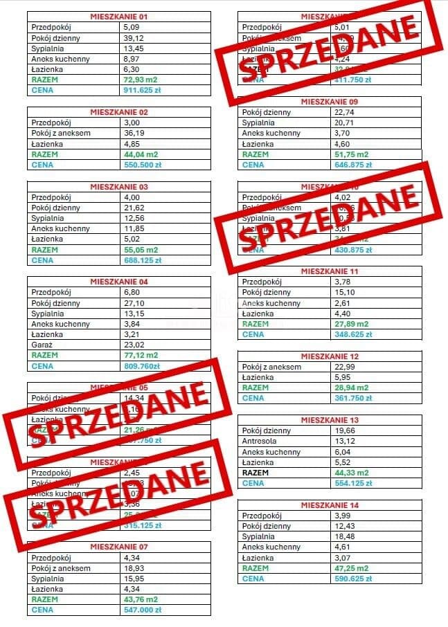 * ceny poszczególnych lokali różnią się w zależności od powierzchni (cena za metr kwadratowy wynosi 12.500 zł)