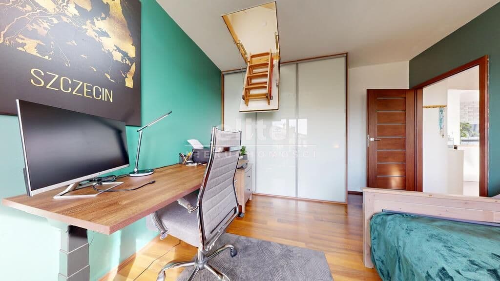 - strychu funkcjonującego jako pomieszczenie do składowania, ale jest wyposażone w okno połaciowe, połacie są obłożone płytami karton-gipsowymi oraz wylana jest posadzka betonowa, więc jest możliwość zaadoptowania jako dodatkowe pomieszczenie,