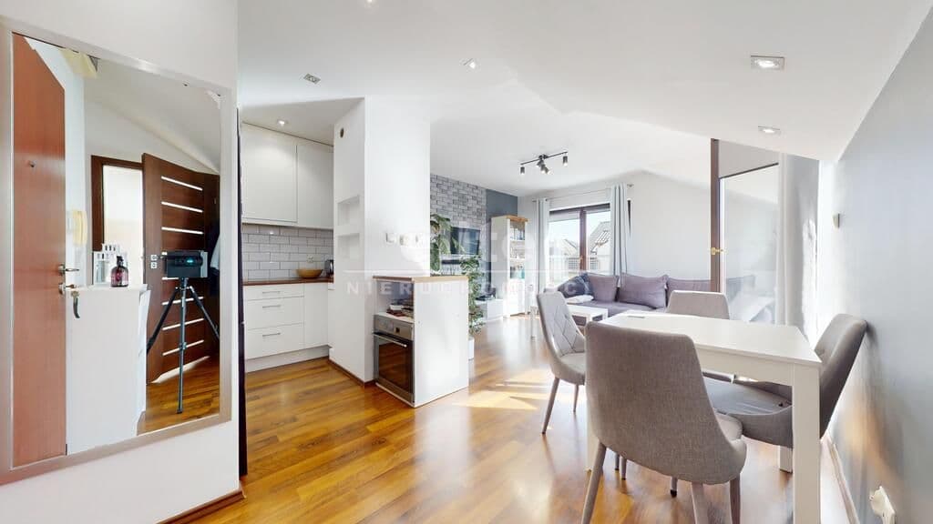 Mieszkanie położone na 2 piętrze o powierzchni użytkowej 45,3 m2, całkowitej ok. 50 m2, do którego przynależy ok. 9 m2 strych z wejściem po drabince z pokoju (powierzchnia strychu nie jest wliczona w powierzchnię mieszkania).