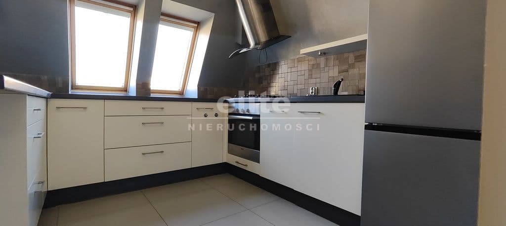 W mieszkaniu są okna PCV oraz połaciowe. Ściany są gładkie i malowane na jasne kolory, ale wymagają odświeżenia. Na podłogach w pokojach panele, w przedpokoju gres. W łazience kafle marki Tubądzin w ładnej stylistyce.