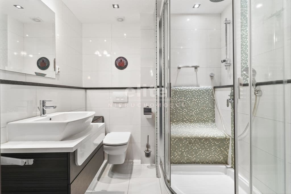 - głównej łazienki z WC z zaprojektowanym miejscem siedzącym w kabinie prysznicowej (5 m2),