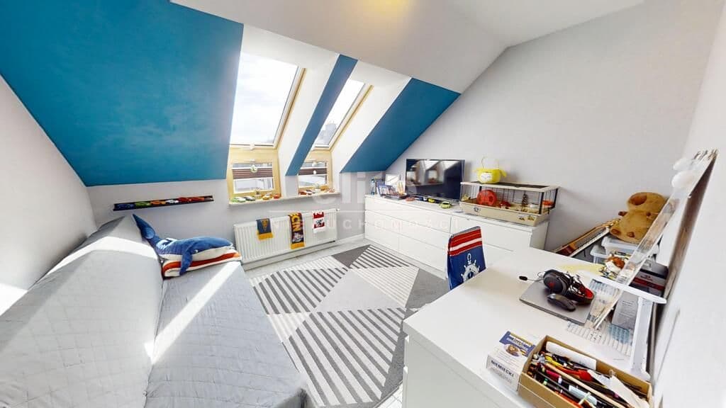 Mieszkanie z dużym potencjałem, istnieje możliwość zrobienia 3 pokoju na poddaszu ok 10m2 (nie wliczony w powierzchnię). W pobliży znajdują się liczne sklepy lokale użytkowe, gminny ośrodek sportu i rekreacji z basenem i siłownią. Liczne miejsca parkingowe ogólnodostępne, przedszkola i szkoła podstawowa.