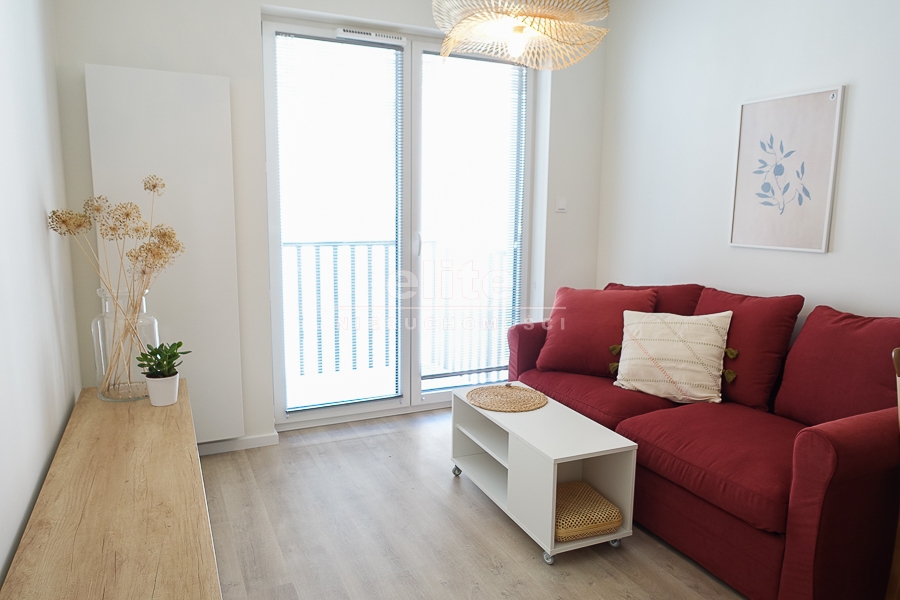 Available from June 7, 2025 for rent an elegant 2-room apartment for a couple or a single in the newly built in 2021 apartment building KAMIENICA NOVA III at Narutowicza street, with two silent elevators, furnished and equipped. Freshly finished and fully furnished. Room with kitchenette of 18 m2, bedroom 8.5 m2, hall 2.66 m2, bathroom 3.49 m2, west-facing balcony 2.48 m2 with lighting. AVERAGE MONTHLY COSTS ARE APPROX. PLN 800, INCLUDING ALL COSTS: RENT TO THE MANAGER, HEATING, WATER, ELECTRICITY AND GARBAGE REMOVAL. Fully equipped kitchenette: fridge with freezer, hood, ceramic hob, oven, dishwasher. In the room: table, 2 chairs, coffee table on wheels, TV table, sofa bed, in the bedroom: two-door wardrobe, double bed 1.40 m wide, chest of drawers with drawers, tables, shelf, in the hall: two-door wardrobe, shelf, mirror. In the bathroom: washing machine, washbasin, cabinet, shower cubicle without shower tray with linear drain, ceramic tiles. All equipment under warranty. Blinds in the windows. Possibility of connecting cable TV and the Internet. Cost PLN 2,500, additional rent to the manager, PLN 367.66 plus electricity approx. PLN 150 per month, water and heating from SEC PLN 177 on average per month, cold water PLN 120 on average. Heating and water heating from the city. Deposit PLN 4,000. Offer for a couple or a single person. The apartment is not suitable for children or animals. Occasional lease with the third party indicating the apartment to which the tenant will move after the lease ends or a contract for a company.