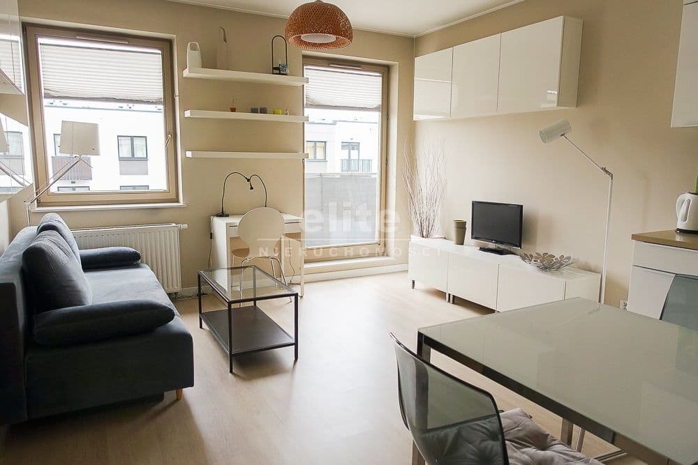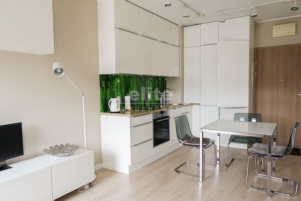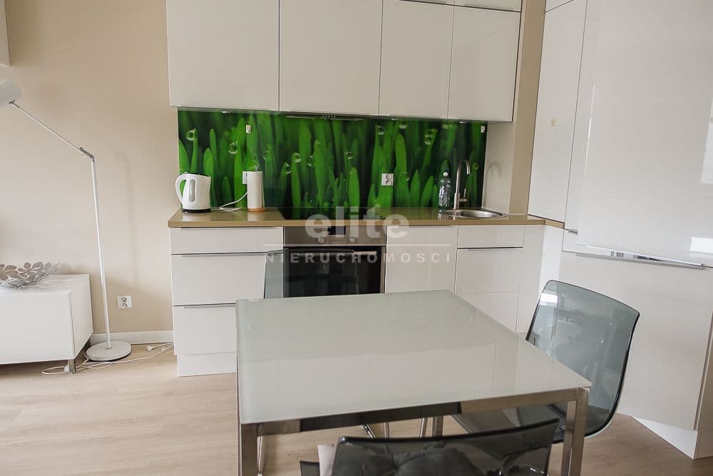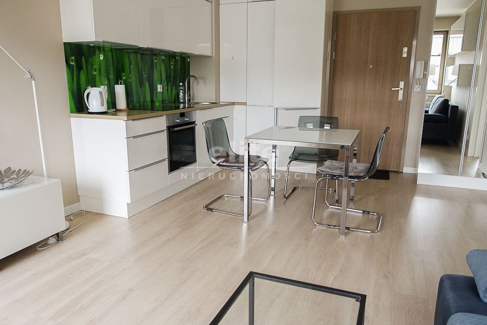 NOVA TENEMENT HOUSE on Langiewicza Street, close to Brama Portowa and Posejdon Street, overlooks an interior patio, offering a quiet street view. Available for rent immediately, this elegant, furnished apartment is located on the sixth floor of a 2012 apartment building. Fully furnished. The 22 m² living room with a kitchenette includes a glass-topped table, 3 chairs, a new, extendable sofa bed, a TV stand, a coffee table, a desk, and a double-door wardrobe. The kitchenette is equipped with modern furniture and appliances (a 45 cm SIMENS dishwasher, a 3-drawer refrigerator with a freezer, and an electric and ceramic hob). The 8.58 m² bedroom includes a 1.20 m long double-door wardrobe, a white-framed mirror, an ironing board, bedding, and a 1.40 m wide bed. The 6.16 m² bathroom features a shower, a sink with a cabinet, a white wardrobe, a SIEMENS washing machine, a closet, and a dryer. The apartment is fully equipped: a PHILIPS iron, a BOSCH vacuum cleaner, a COFFEE WARERTON electric kettle, pots, a frying pan, a Cousine ovenproof dish, a set of plates and cups, and cutlery. The cost is PLN 2,670 + PLN 780 in average monthly fees to the property manager, including electricity, heating, and water. Located near the city center, the building has a concierge desk and a quiet elevator. A PLN 4,000 security deposit is required.