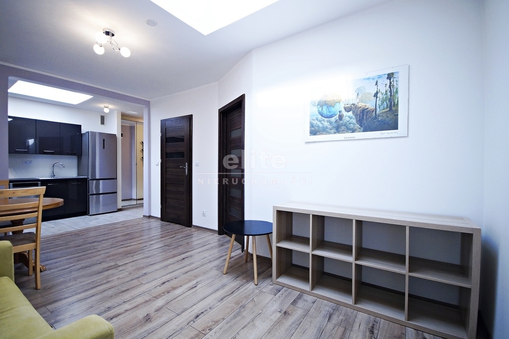 Wyposażony w stół z krzesłami, wygodny wypoczynek, komodę pod TV. Ściany gładzone i pomalowane.