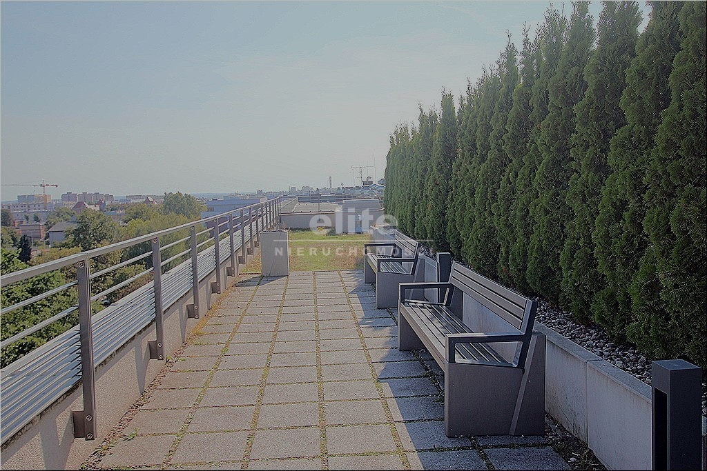 Dostępny dla mieszkańców taras na dachu budynku, bardzo ładnie zagospodarowany z widokiem na panoramę Szczecina.