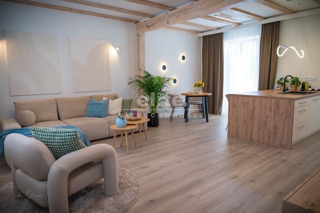 dwupoziomowy apartament o powierzchni 74 m², wykończony w wysokim standardzie. Mieszkanie przeszło
