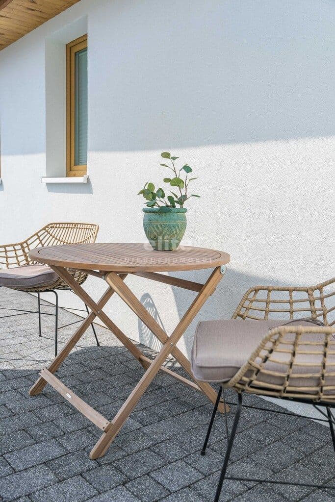 Taras stanowi idealną przestrzeń do wypoczynku – miejsce na poranną kawę lub relaks po pracy.