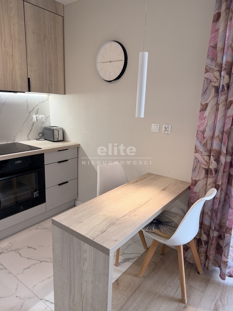 Mieszkanie znajduje się na 6. piętrze i zostało zaprojektowane z dużym wyczuciem stylu – wszystkie meble wykonano na wymiar, dzięki czemu wnętrze jest nie tylko nowoczesne, ale też wyjątkowo funkcjonalne. Jasny salon z rozkładaną sofą tworzy przytulną strefę wypoczynkową, a wydzielona część jadalniana doskonale sprawdza się do codziennych posiłków lub pracy przy laptopie. Aneks kuchenny został w pełni wyposażony w sprzęt AGD w zabudowie – zmywarkę, płytę, piekarnik i lodówkę. W łazience znajduje się prysznic oraz pralka, a pojemna szafa w zabudowie zapewnia dużo miejsca do przechowywania. Z salonu można wyjść na przestronny balkon z przyjemnym widokiem, idealny na poranną kawę lub wieczorny relaks.