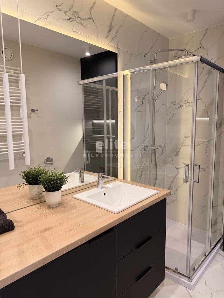 Mieszkanie znajduje się na 5. piętrze z windą w nowym budynku o wysokim standardzie. Całość została zaprojektowana z głową i wykończona ze smakiem – neutralne kolory, nowoczesne meble wykonane na wymiar i świetnie dobrane oświetlenie tworzą harmonijną przestrzeń, w której po prostu chce się mieszkać.