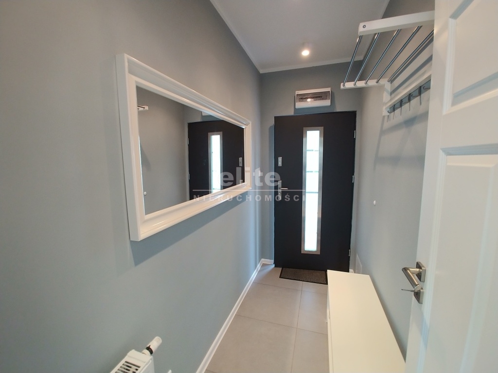 Mieszkanie składa się z: salonu (panele podłogowe, ściany wyszpachlowane na biało farba Dulux/antyczny marmur, lampy) z kuchnią z oknem: (meble kuchenne w zabudowie, lodówko-zamrażarka, elektryczna płyta grzewcza, piekarnik elektryczny, okap kuchenny, zlewozmywak, zmywarka), przestronnej sypialni, wiatrołapu, łazienki z oknem (wanna, kabina prysznicowa, dwie umywalki i wc, jest możliwość doposażenia w pralkę), balkonu i wc ( ustęp, umywalka). Dodatkowo przedsionek oraz na dole do dyspozycji mieszkańców wspólny kawałek ogródka.