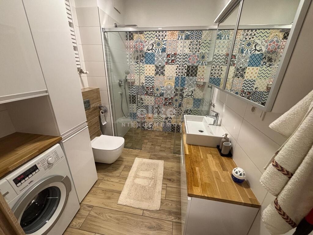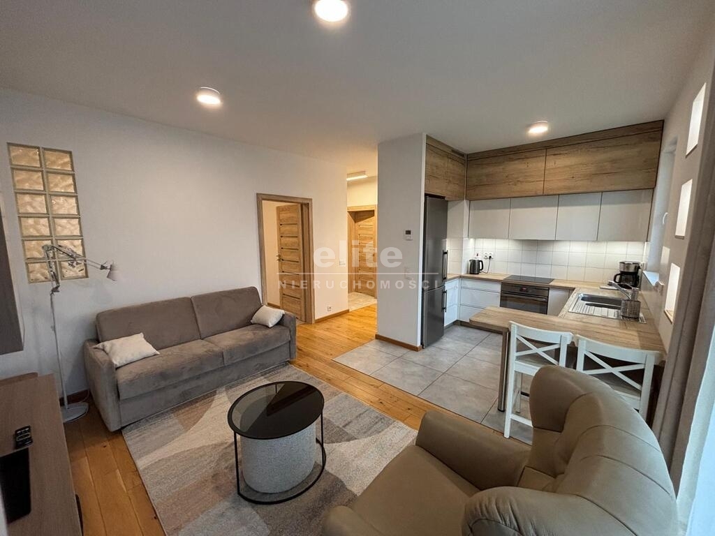 Wyposażona w pełne AGD kuchnia, łazienka z prysznicem oraz pralką, w salonie - RTV, kanapa, w sypialni łóżko (160x200), w przedpokoju zabudowa.