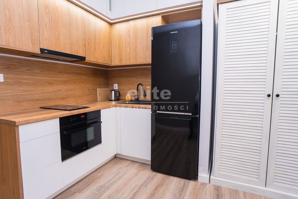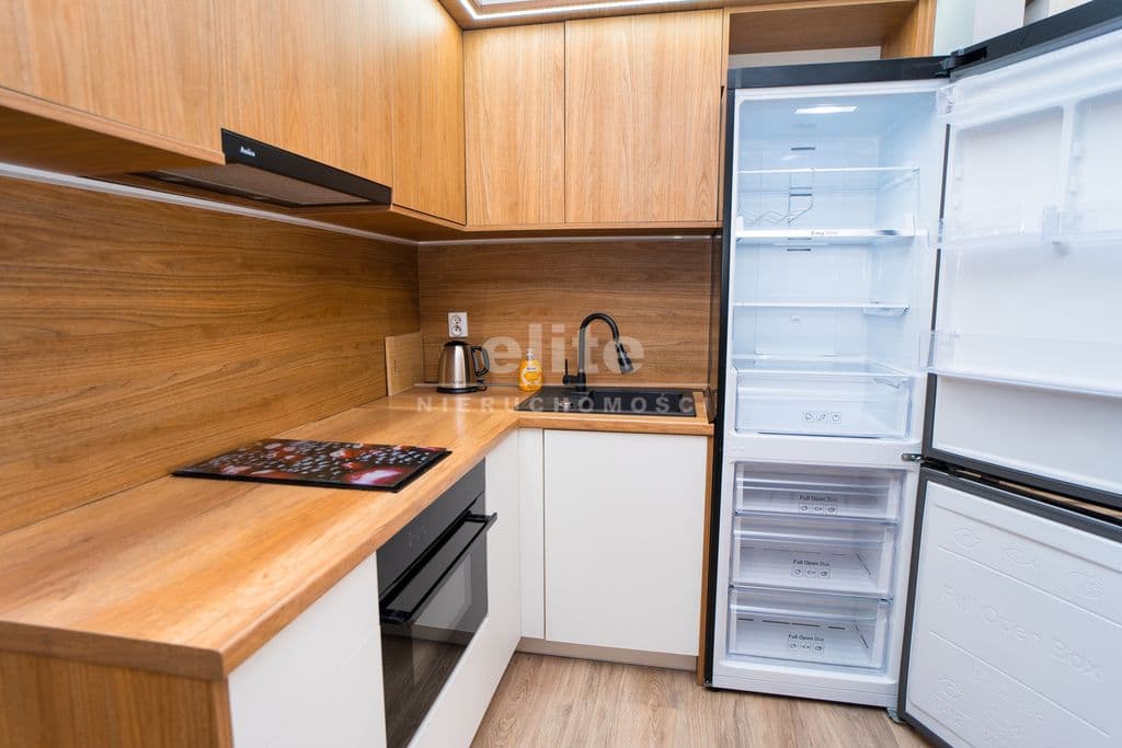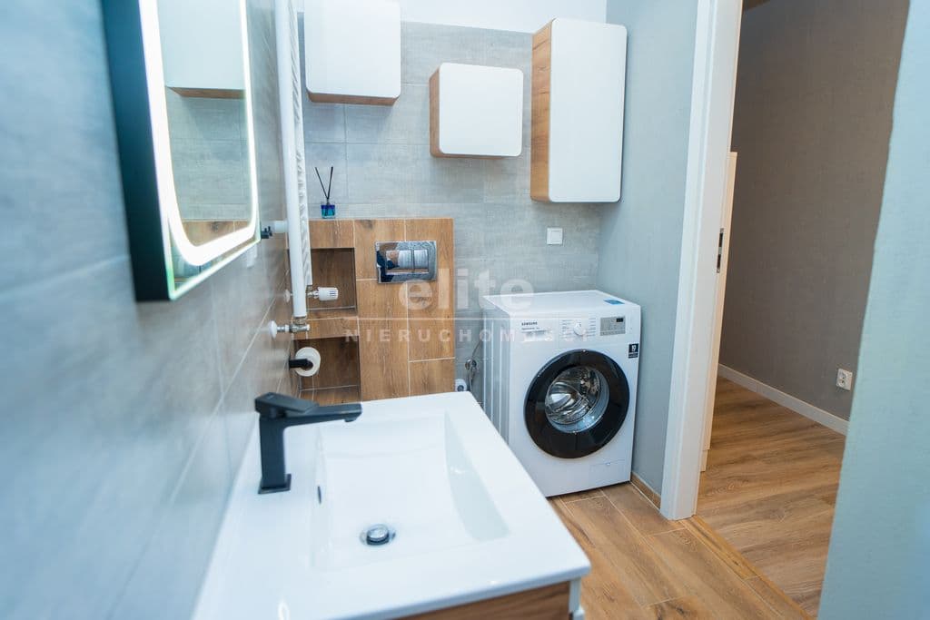 Umeblowany aneks kuchennyw zabudowie, wyposażony jest w sprzęty : lodówkę, zamrażarkę, piekarnik elektryczny z kuchenką mikrofalową, płytę grzewczą, okap. W łazience znajdują się: szafki, podwieszany WC, umywalka, grzejnik drabinkowy, dotykowo podświetlane lustro, nowa pralka, kabina przysznicowa.