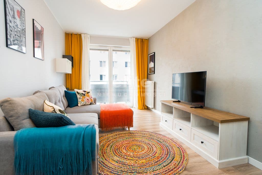 Lokal jest kompletnie wyposażony: narożna kanapa, komoda RTV, telewizor, stolik, dwa krzesła, biurko, pojemna szafa, 2 wiszące szafki.