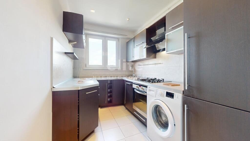 Mieszkanie rozkładowe o powierzchni 49m2, z widną kuchnią w zabudowie i sprzętem AGD.
