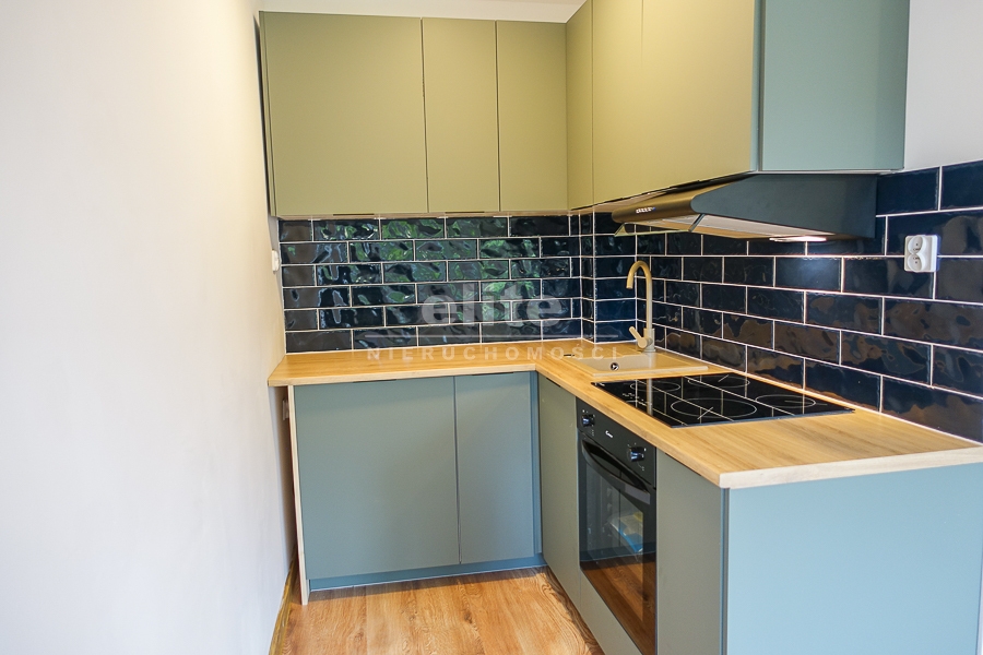 OPIS MIESZKANIA: Mieszkanie umeblowane. W pokoju szafa trzydrzwiowa, komoda, kanapa 2-osobowa, stolik. Pokój z aneksem kuchennym. Kratka balkonowa, ale balkonu nie ma. W aneksie nowa zabudowa meblowa, nowe urządzenia: płyta grzewcza ceramiczna, piekarnik, zlewozmywak, pochłaniacz. W łazience wanna, umywalka, compact, nowa pralka, glazura i terakota. Okna PCV, drzwi wejściowe nowe.