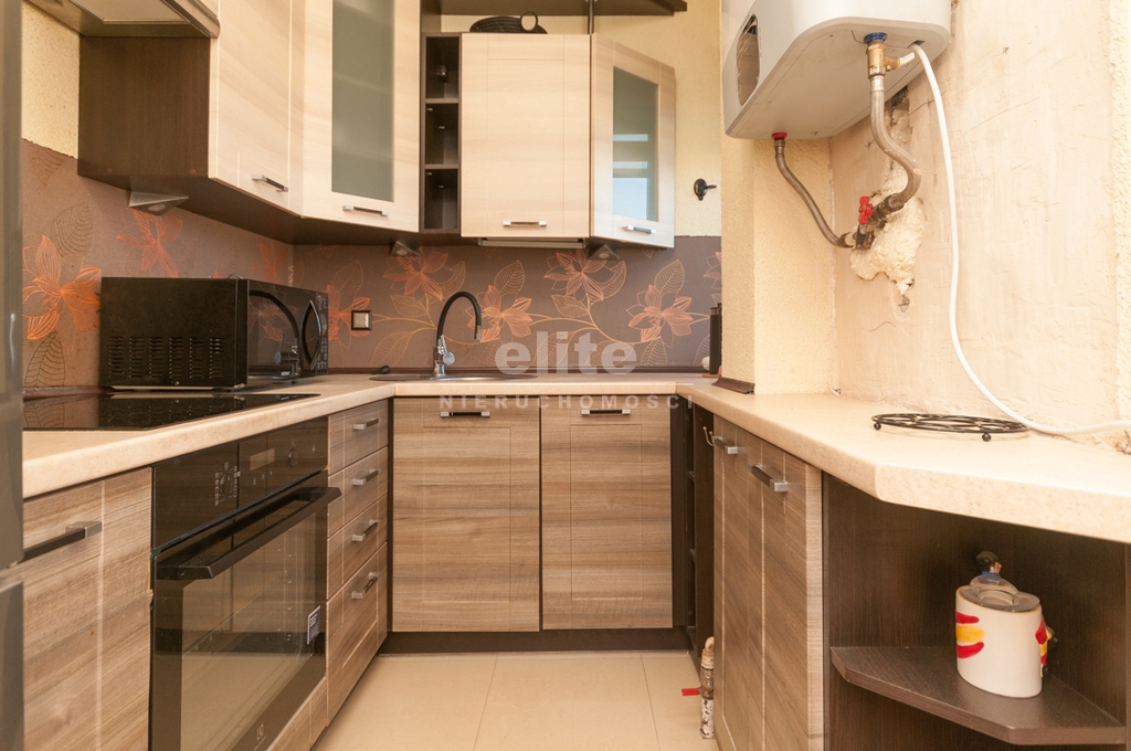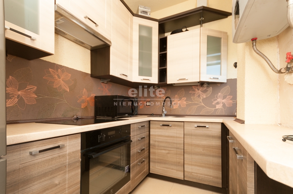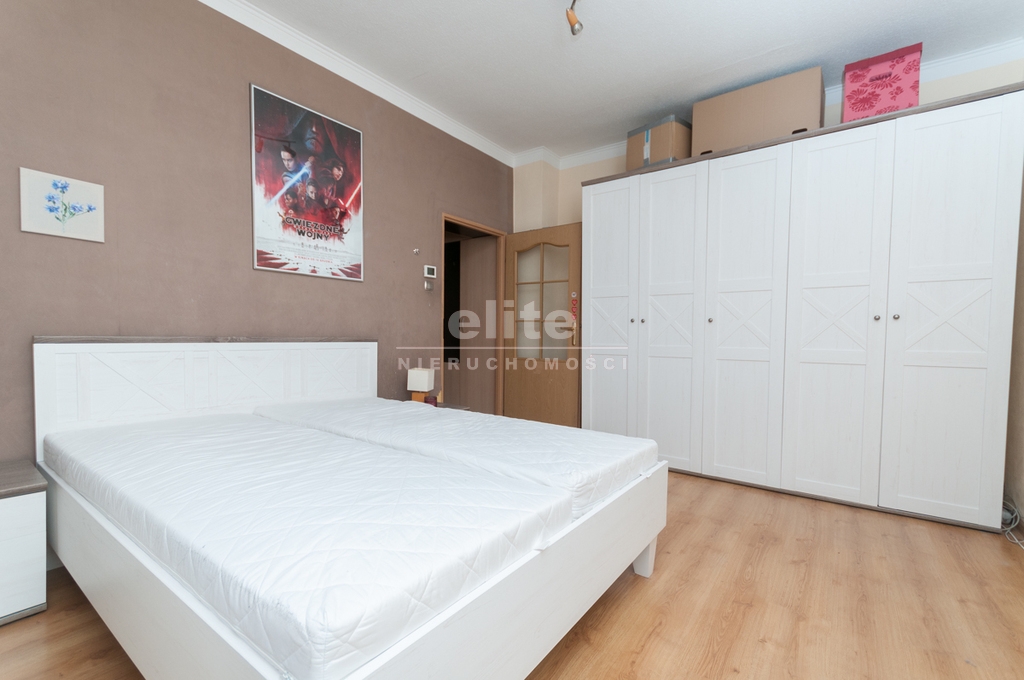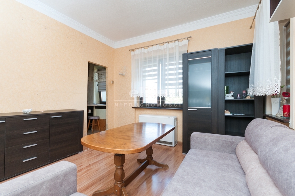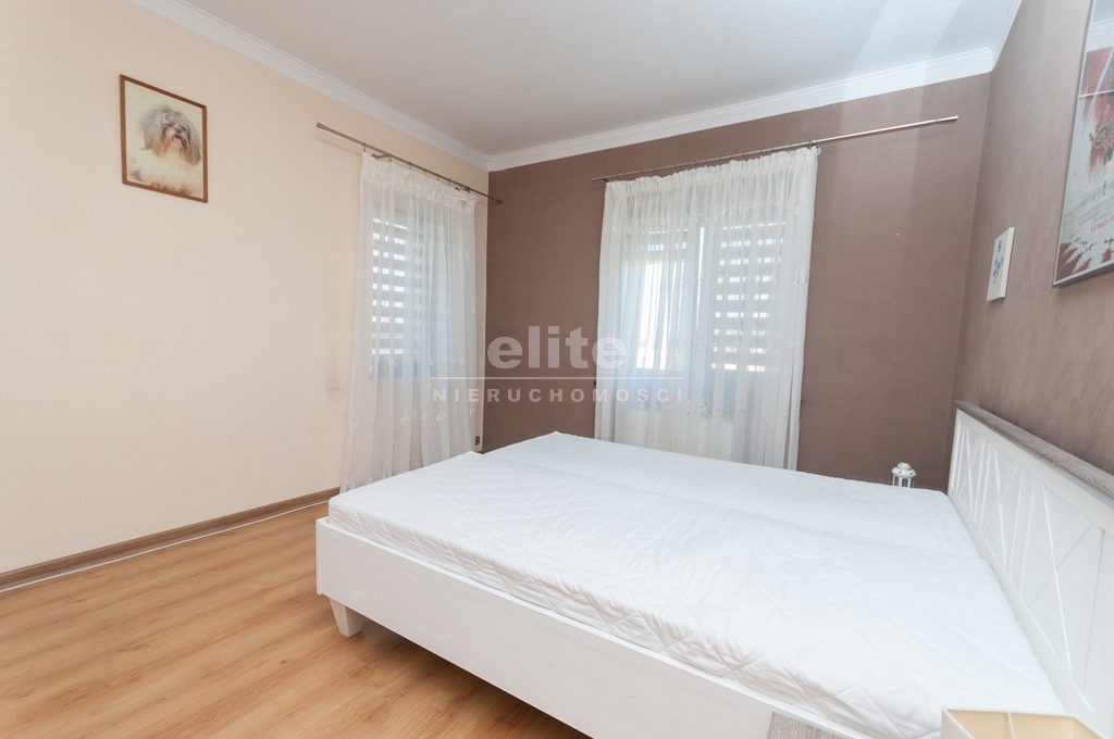 Duża wygodna sypialnia w kształcie kwadratu z dużą szafa i łożem małżeńskim. Pokój dzienny z rozkładanym narożnikiem i pozostałymi meblami jak na zdjęciu. Z części dziennej wchodzi się do widnej kuchni - meble kuchenne, płyta indukcyjna, piekarnik elektryczny, lodówko-zamrażarka, mikrofalówka.