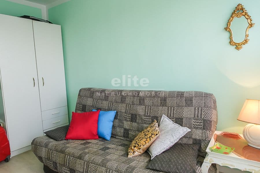 OPIS MIESZKANIA: Pokoje o powierzchni 16 m2 i 9 m2, w każdej kanapa rozkładana dwuosobowa, w jednym szafa dwudrzwiowa w drugim komoda, stolik. W kuchni meble i wyposażenie AGD: kuchenka gazowa z piekarnikiem, lodówka, zmywarka. W łazience kabina prysznicowa, umywalka, pralka, WC razem. Glazura i terakota. W przedpokoju szafa dwudrzwiowa.