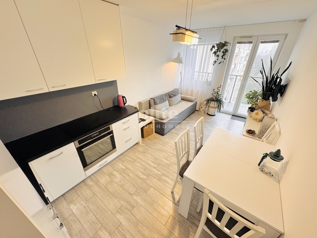 - salon z aneksem kuchennym z wyjściem na balkon,